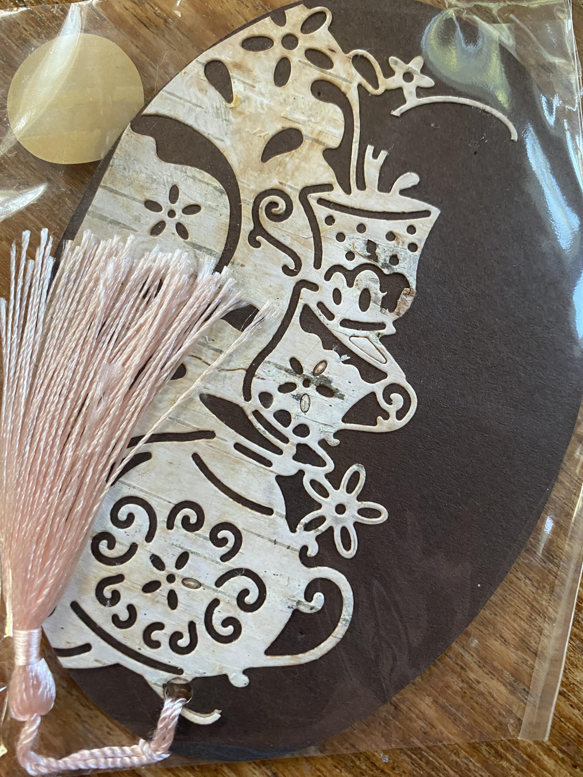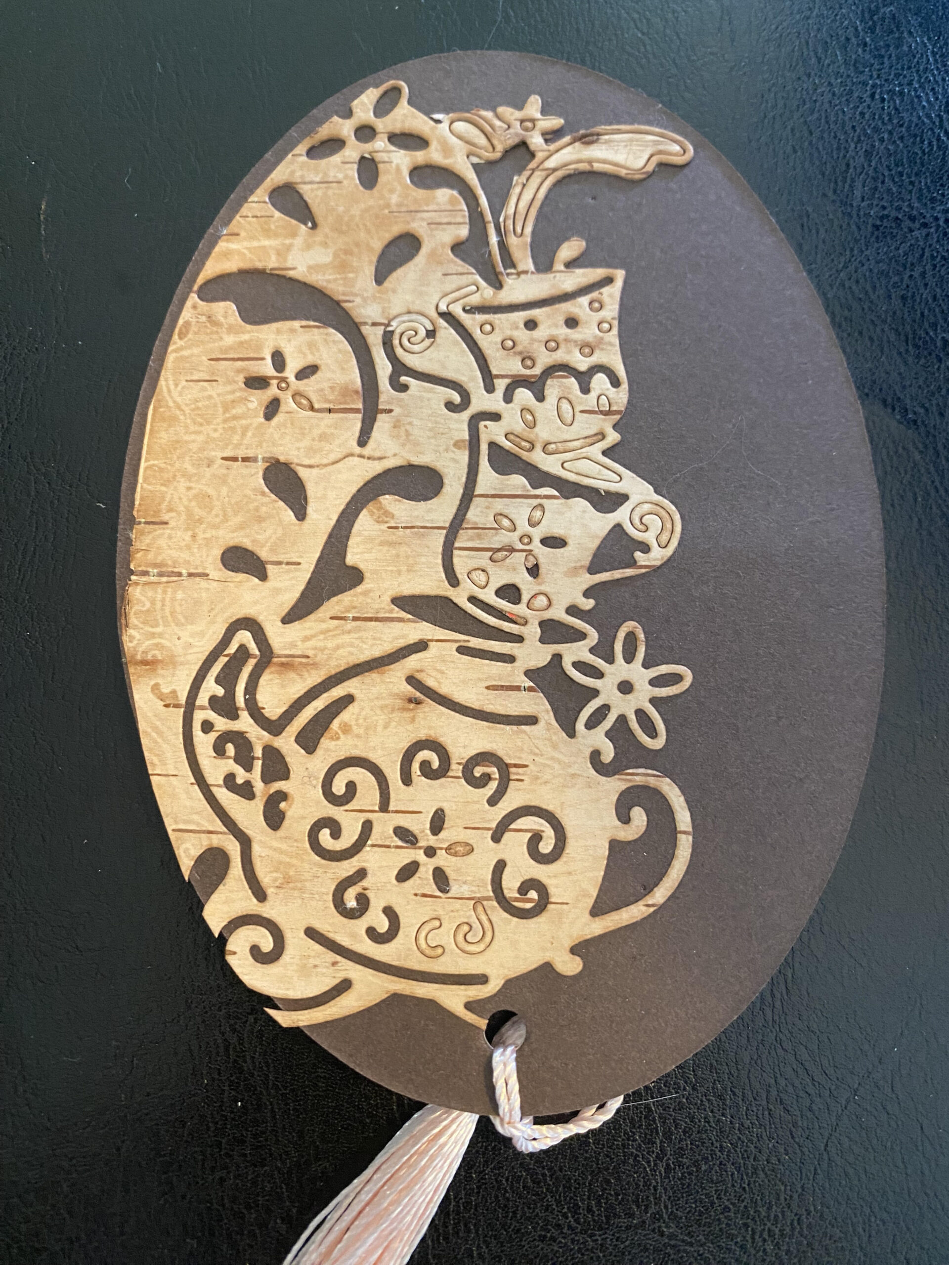 “This delightful bookmark is crafted from natural birch bark, its gentle texture and earthy scent transporting you to a serene tea time setting. A charming tea pot and tea cup are etched into the bark, surrounded by delicate flowers and leaves, as if plucked from a lush garden. The tea pot’s intricate details, from its lid to its handle, are skillfully rendered, while the tea cup’s dainty shape and floral pattern are perfectly captured. The surrounding birch bark is etched with subtle patterns, evoking the texture of a vintage lace tablecloth and the warmth of a cozy afternoon. A soft, pastel-colored ribbon or tassel completes the bookmark, making it easy to mark your place in your favorite book. This lovely bookmark is a thoughtful gift for anyone who loves tea, gardening, or the simple joys of slowing down. It’s a reminder to appreciate the beauty in everyday moments and savor the warmth of connection with others.”